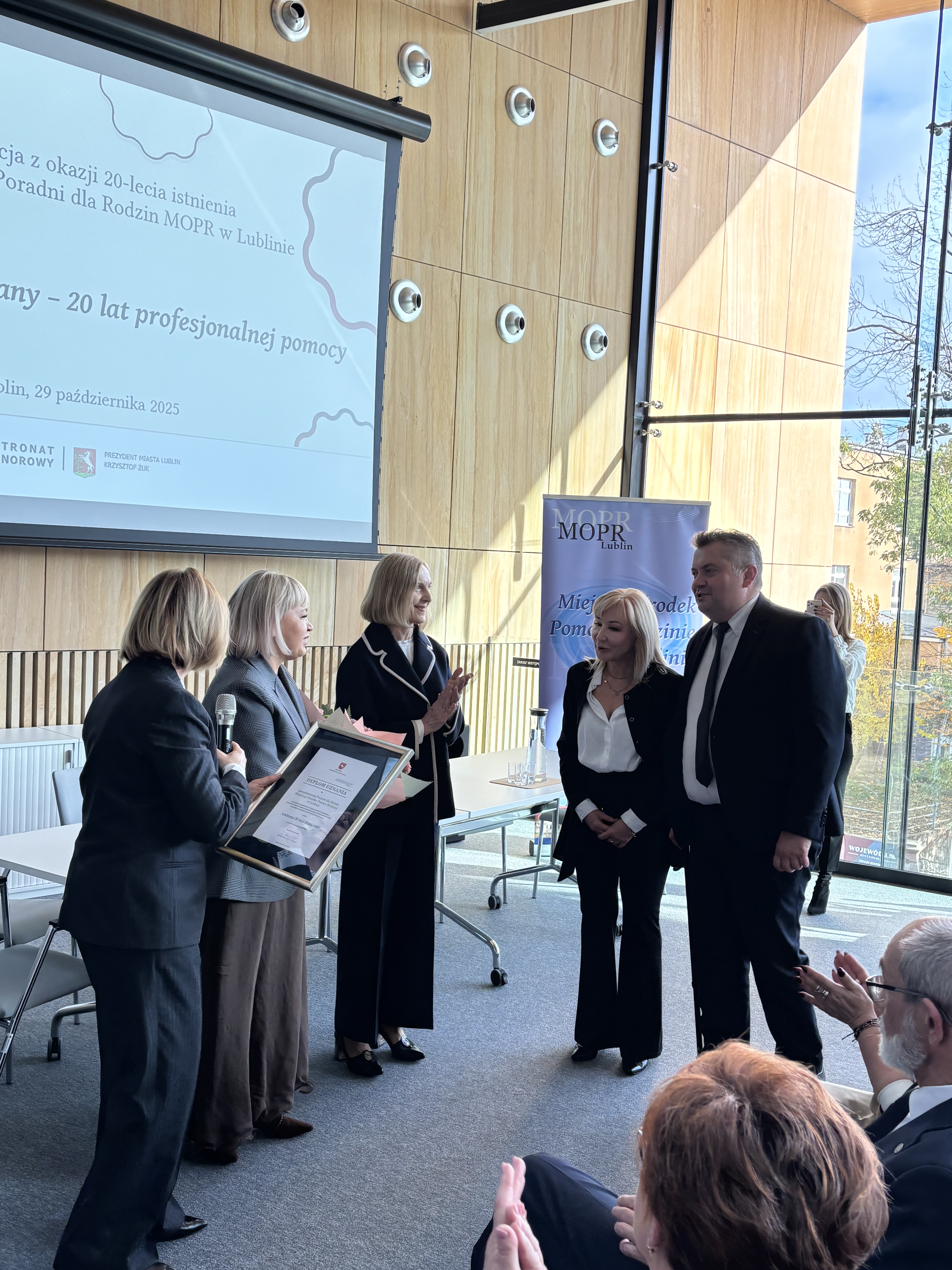 29 października 2025 r. odbyła się konferencja pod nazwą "Od rozmowy do zmiany - 20 lat profesjonalnej pomocy", zorganizowana z okazji jubileuszu działalności Specjalistycznej Poradni dla Rodzin Miejskiego Ośrodka Pomocy Rodzinie w Lublinie.